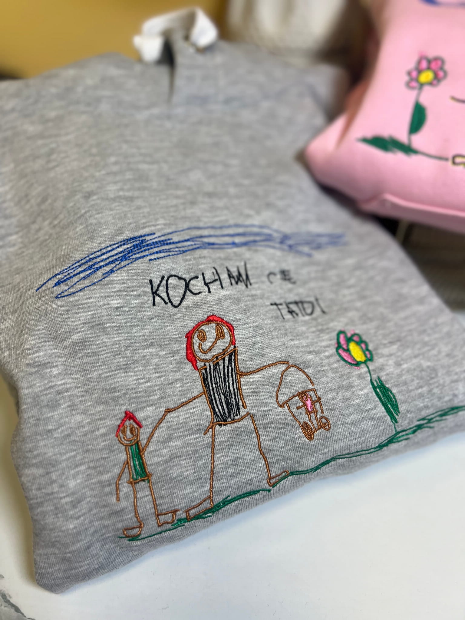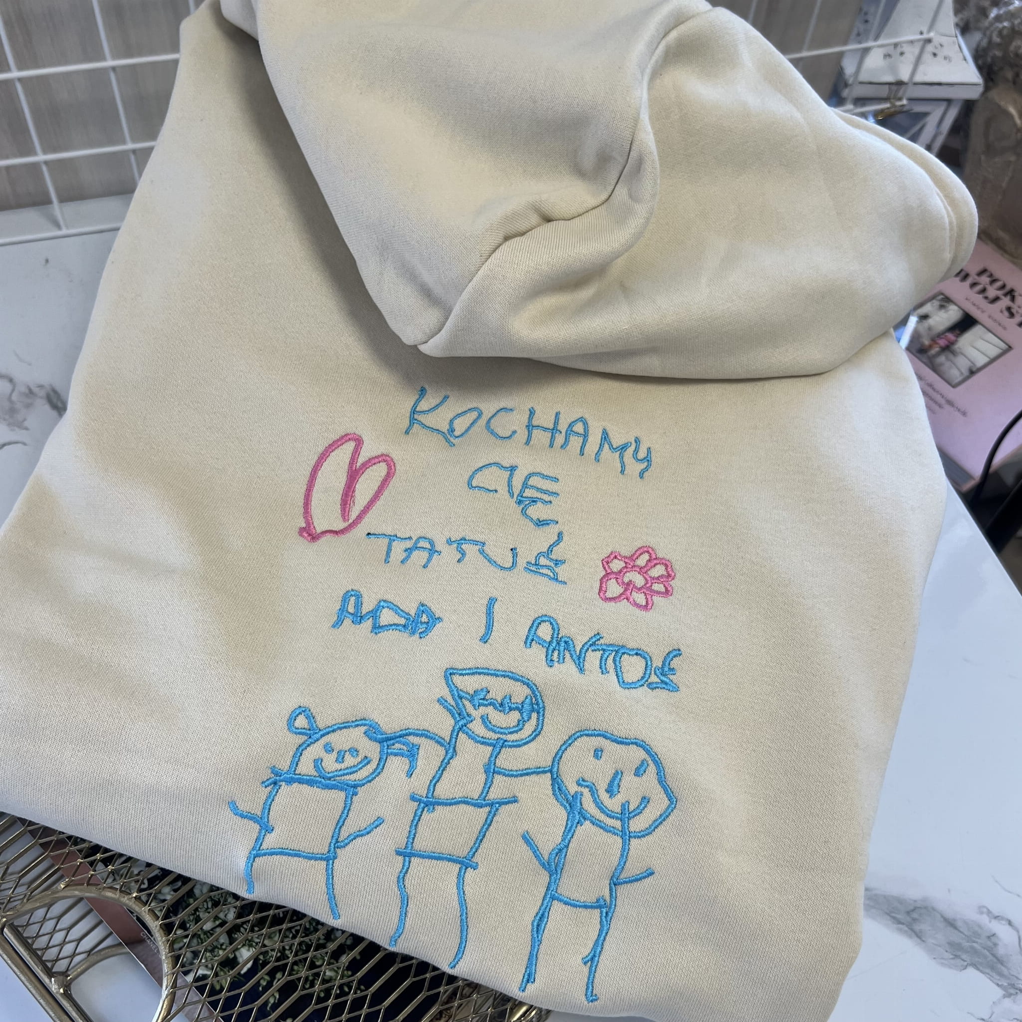 Wyjątkowa męska bluza z haftem, stworzonym na podstawie rysunku! Ta bluza to idealne połączenie komfortu i unikalnego stylu.