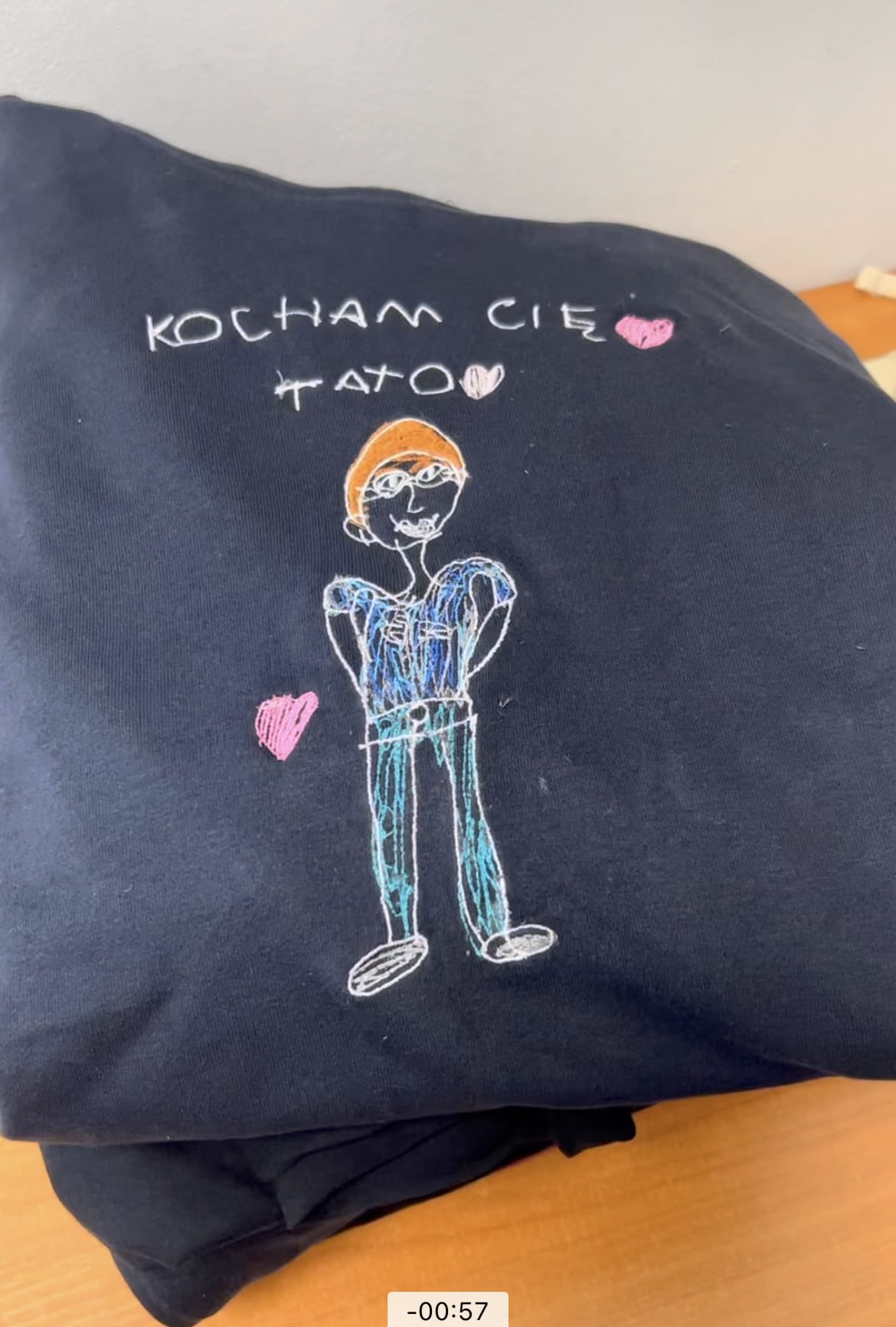 Wystarczy załączyć zdjęcie rysunku a my je przekształcimy na projekt haftu, wyślemy projekt do akceptacji i przejdziemy do szybkiej realizacji ( przy składaniu zamówienia jest pole ,,dodaj zdjęcie do haftu'', jeśli zdjęcie nie chce się załadować to można je wysłać na mail nancyakcesoria@gmail.com )