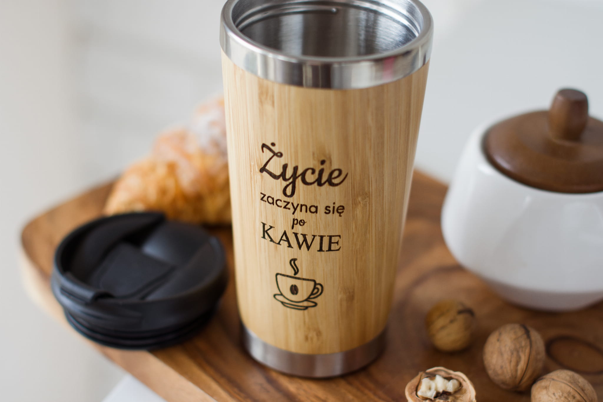 Wysokiej jakości, bambusowy kubek termiczny z możliwością wygrawerowania twojego ulubionego motto, cytatu, ikony, imienia itp. Dla Nas nie ma rzeczy nie możliwych - napisz co chcesz wygrawerować a My to po prostu zrobimy :)