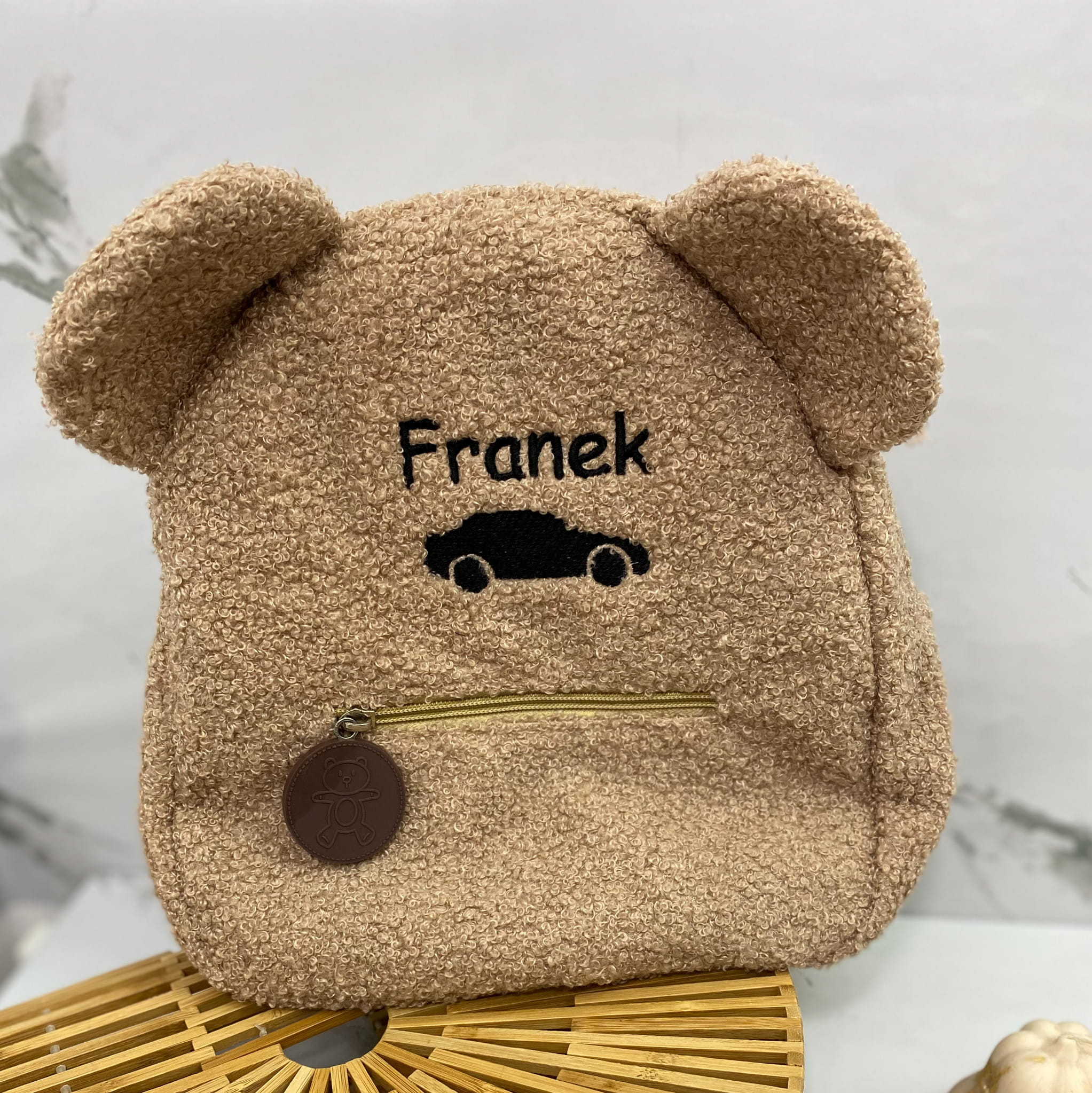 beżowy plecak dla dziecka pluszowy MIŚ z haftem